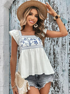 Embroidered Square Neck Cap Sleeve Blouse