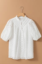 Eyelet Button Up Half Sleeve Blouse