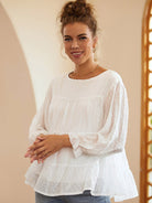 Full Size Swiss Dot Ruffled Round Neck Long Sleeve Blouse