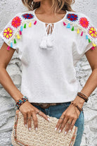 Tassel Tie Neck Short Sleeve Blouse