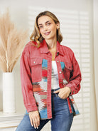 Dropped Shoulder Long Sleeve Printed Denim Jacket