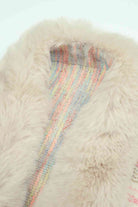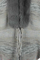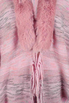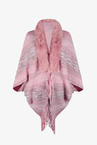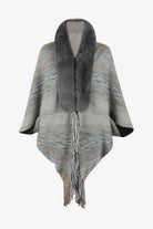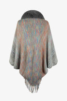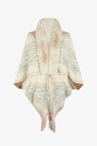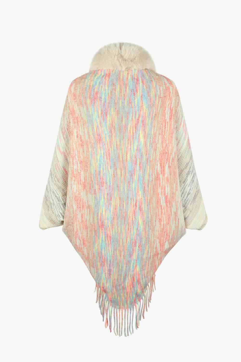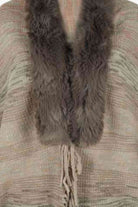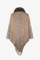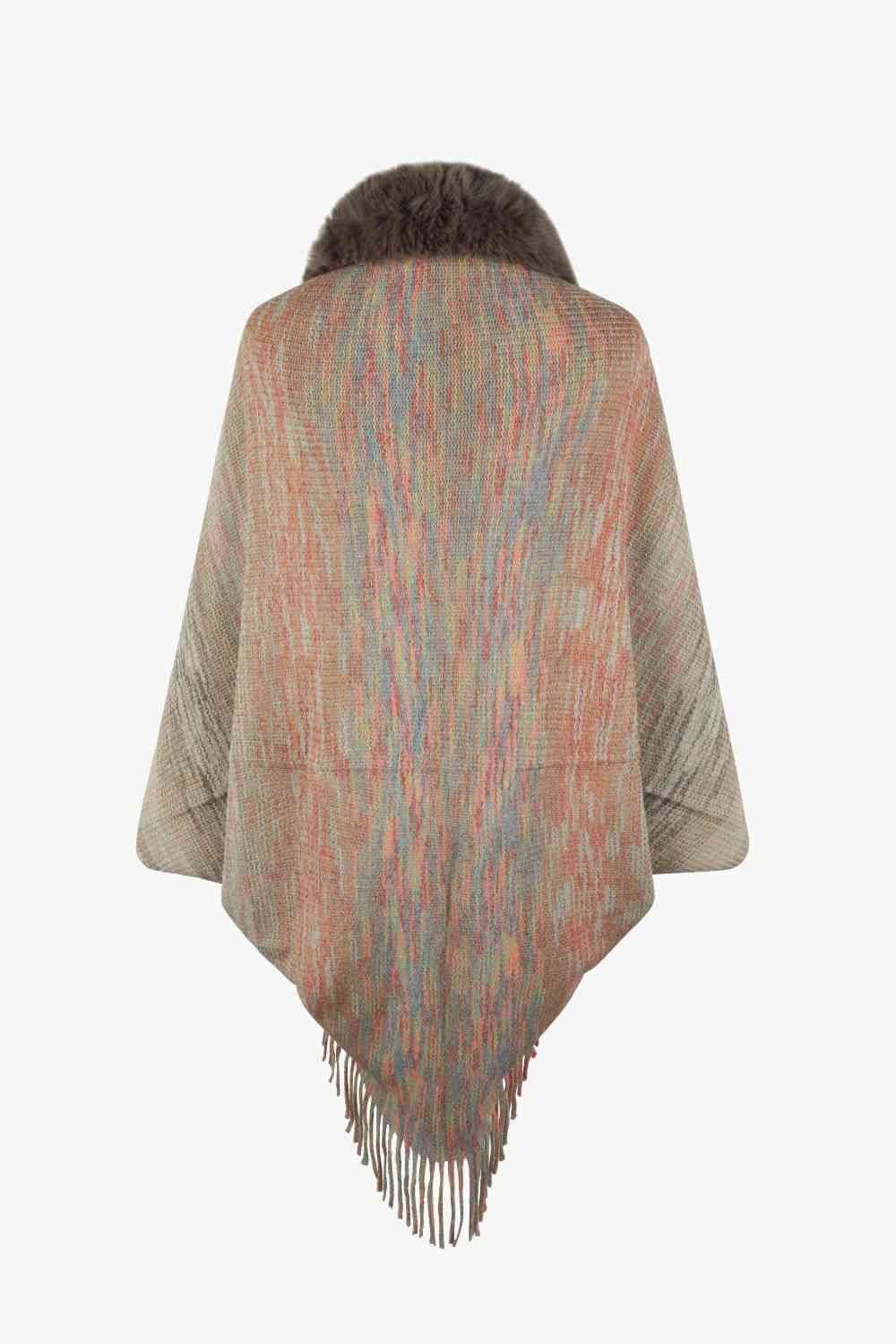 Open Front Fringe Hem Faux Fur Collared Poncho for Women