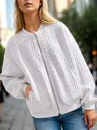 Textured Zip Up Dropped Shoulder Jacket