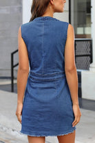 Full Size Button Up V-Neck Sleeveless Denim Dress