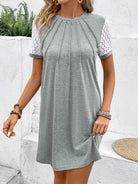 Lace Detail Round Neck Short Sleeve Mini Dress