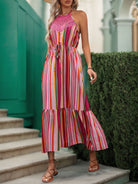 Lace Detail Striped Halter Neck Midi Dress