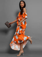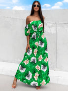 Pleated Floral Off-Shoulder Short Sleeve Midi Dress