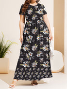 Plus Size Printed Round Neck Short Sleeve Maxi Dress