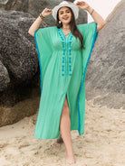 Plus Size Tied Fringe V-Neck Half Sleeve Dress