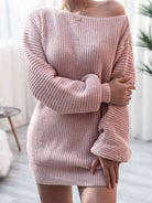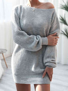 The Rib-Knit Balloon Sleeve Boat Neck Sweater Dress from Trendsi Trends is a versatile, stylish option for your casual wardrobe. This mini dress features a ribbed knit design and a boat neck, perfect for a classic, solid pattern. With its long sleeves, this dress is both comfortable and fashionable.