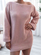 Rib-Knit Balloon Sleeve Boat Neck Sweater Dress