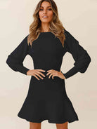 Round Neck Lantern Sleeve Sweater Dress