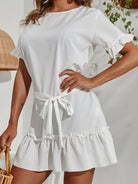 Tied Frill Short Sleeve Mini Dress