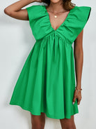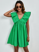 V-Neck Cap Sleeve Mini Dress