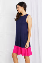 Yelete Full Size Two-Tone Sleeveless Mini Dress with Pockets