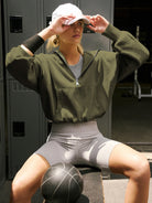Half Zip Pocketed Dropped Shoulder Hoodie