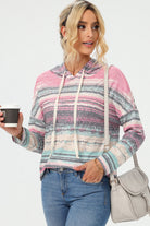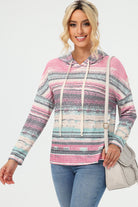 Striped Drawstring Long Sleeve Hoodie