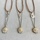 Alloy & Cowhide Sunflower Pendant Necklace 2 4 1