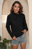 Asymmetrical Neck Long Sleeve Pullover Sweater