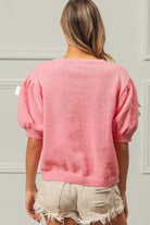 BiBi Ribbon Bow Detail Puff Sleeve Sweater
