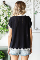 First Love Full Size Contrast Wavy Crochet Drop Shoulder Knit Top