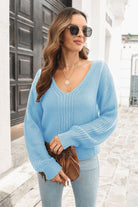 Ribbed Scoop Neck Long Sleeve Pullover Sweater