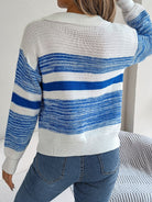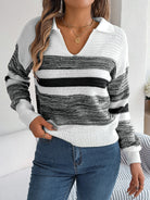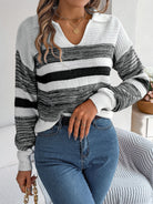 Striped Collared Neck Long Sleeve Sweater