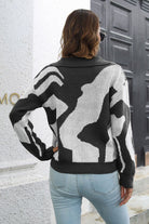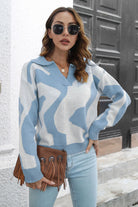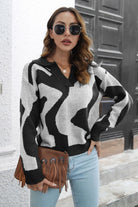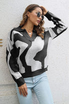 Two-Tone Johnny Collar Dropped Shoulder Pullover Sweater