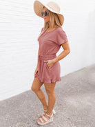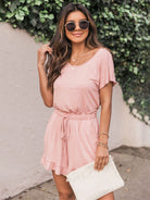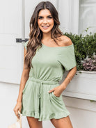 Ruffled Boat Neck Short Sleeve Romper