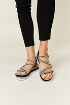 The rhinestone strappy wedge sandals are the perfect blend of glamour and comfort. The dazzling rhinestone embellishments on the straps add a touch of sophistication to your look. The wedge heel provides added height while still being easy to walk in. Elevate your style with these stunning rhinestone strappy wedge sandals, perfect for adding a touch of sparkle to any outfit.