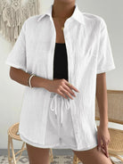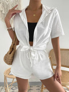 Button Up Short Sleeve Shirt and Drawstring Shorts Set