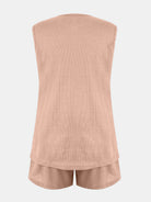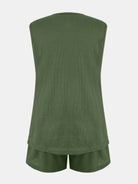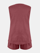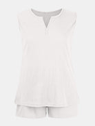 Full Size Waffle-Knit Notched Top and Shorts Set