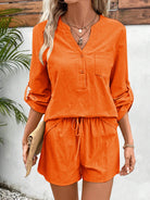 Notched Long Sleeve Top and Shorts Set