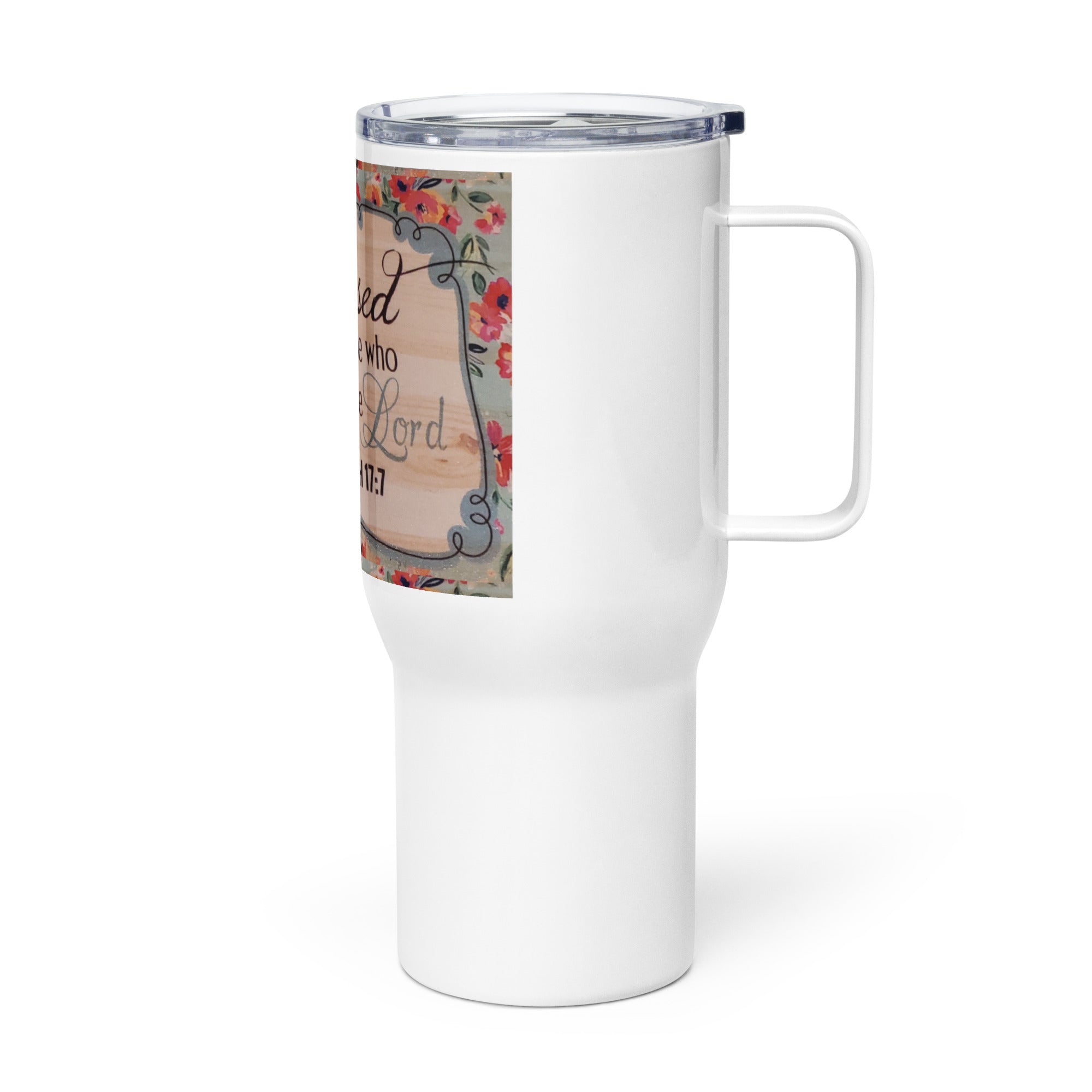 Blessed are those who trust in the lor. Jeremiah 17:7 Trendsi Trends travel mug with lid.