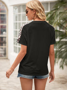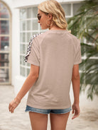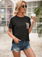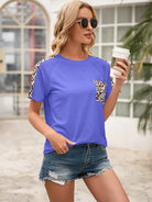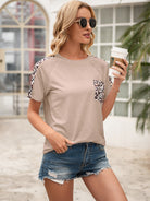 Pocketed Leopard Round Neck Short Sleeve T-Shirt