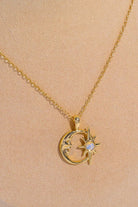 Copper 14K Gold-Plated Moon & Star Shape Pendant Necklace