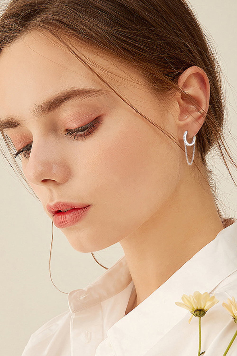 Moissanite 925 Sterling Silver Huggie Earrings with Chain