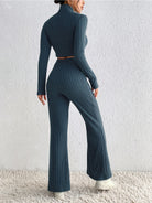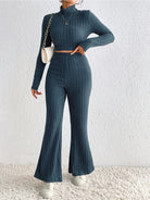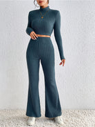 Ribbed Mock Neck Cropped Sweater & High Waist Pants Set