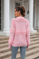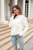 Round Neck Openwork Long Sleeve Pullover Sweater