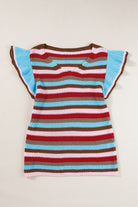 Ruffled Striped V-Neck Cap Sleeve Knit Top